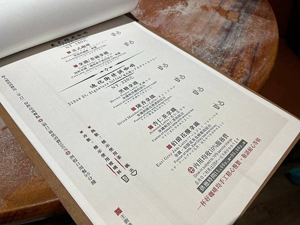 「福來許珈琲館」的菜單以經典咖啡飲品為主,結合大稻埕特色,呈現獨特的味覺體驗。(安妮王個人是推飲品,享受手沖咖啡的細膩風味)